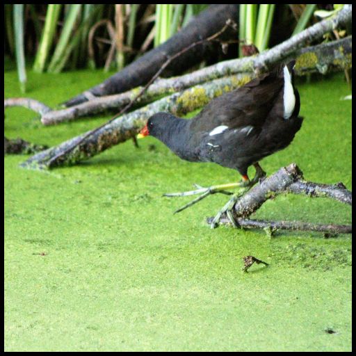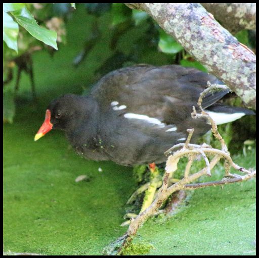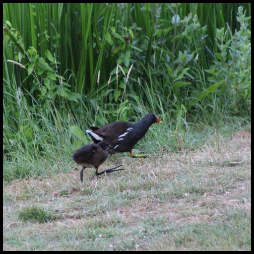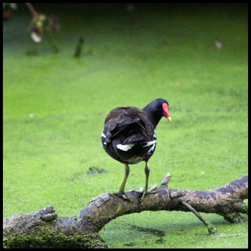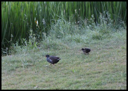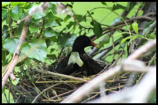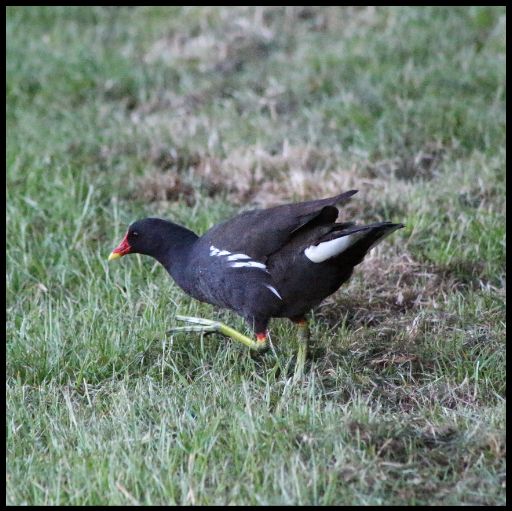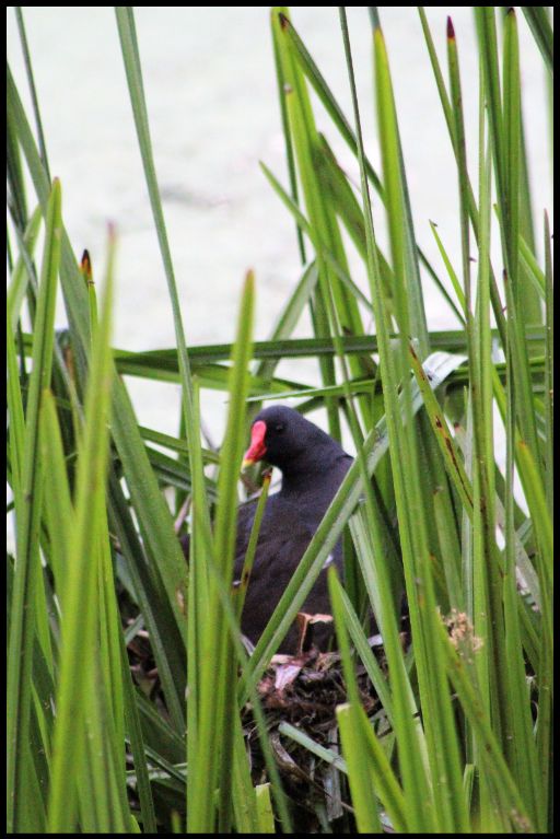 Great Moorhens. I’ve seen them in pictures, but I don’t think they live here. We have Coots which look like a very close cousin. About the same colors and size — and habitat. I have seen coots, but mostly females who don’t have quite the coloration of the boys.