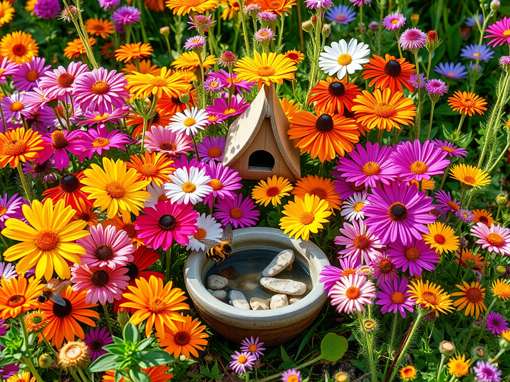 Pollinators need water to drink and cool their hives. A shallow dish with small stones or a birdbath with gently sloped edges can provide them with a safe place to land and drink.