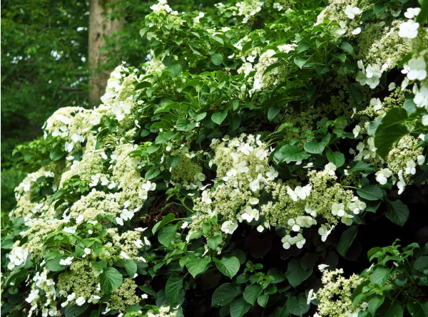 This self-clinging climber is perfect for shady walls. In summer, it produces lace-cap white flowers and provides shelter for wildlife.