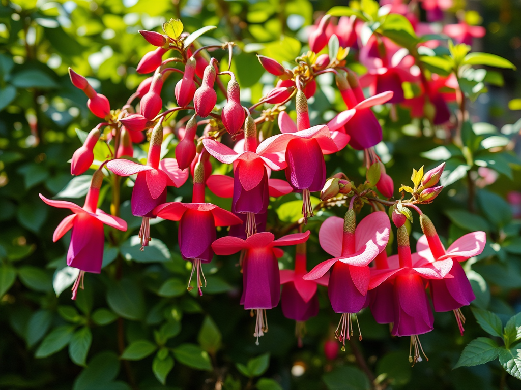 | Types of Fuchsias: Hardy Fuchsias Such as Fuchsia magellanica, these can withstand colder temperatures. Trailing Fuchsias Perfect for hanging baskets with long, cascading blooms. Upright (Bush) Fuchsias Compact and ideal for garden beds or containers. |