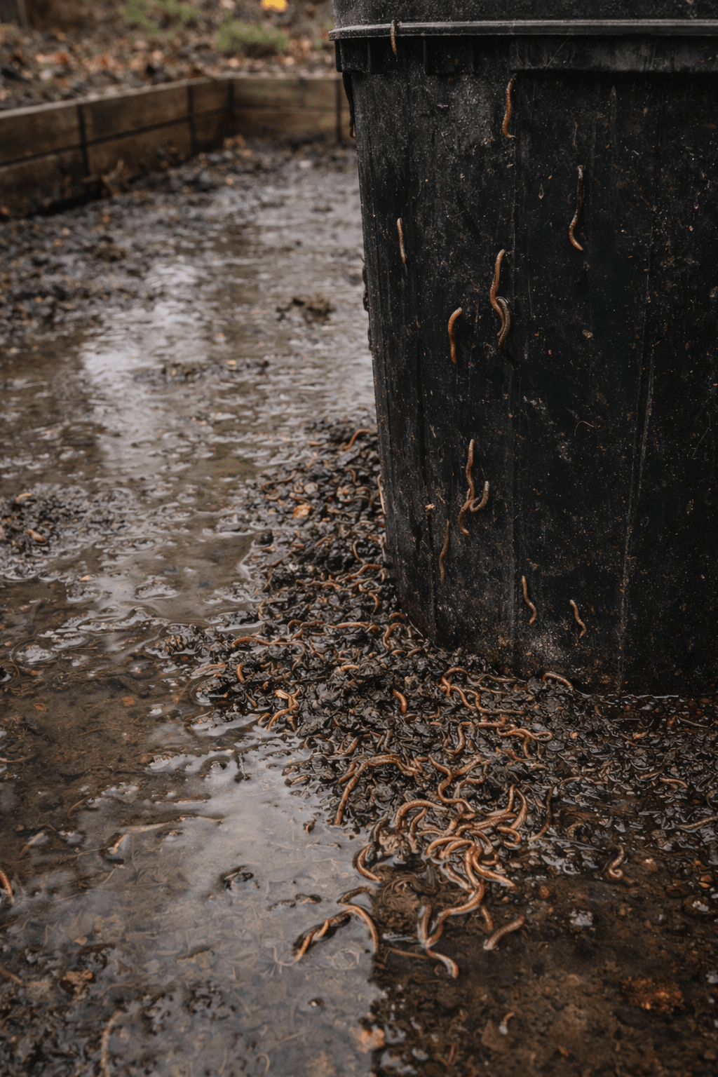 | The first thing that strikes you isn’t the sight. It’s the stillness. You lift the lid of a water tub expecting the usual quiet reassurance — stored rainwater, a small hedge against dry weeks, a practical gesture toward continuity. Instead, you’re met with a pale scatter at the bottom. Thin lines, curved and overlapping, gathered where nothing should be gathering. Worms. Many of them. Most of them are unmistakably dead. It stopped both of us. Suze stood back; I crouched. Neither of us spoke straight away. There’s a particular kind of sadness that comes with unintended harm — especially when it lands in a place you thought you were tending, not threatening. These tubs weren’t careless. They were deliberate. Put here because dry spells are getting longer. Because resilience now has to be planned. Because gardens don’t forgive complacency anymore. And yet here they were: drowned worms at the bottom of a container built in the name of survival. I’ve kept worms before. Properly. I’ve farmed them, relied on them, watched them transform waste into something quietly miraculous. I’ll be doing it again later this year. So this wasn’t abstract for me. It wasn’t theoretical. It felt personal — like finding casualties in a system you believed was benign. The temptation, when faced with something like this, is to reach immediately for explanation. To tidy it up. To turn it into a lesson with a neat moral. But that wasn’t my first response. My first response was grief — small, maybe, but real. A recognition that good intentions don’t exempt us from consequence. That even careful gardeners can build traps without realising. Only later did the thinking begin. |