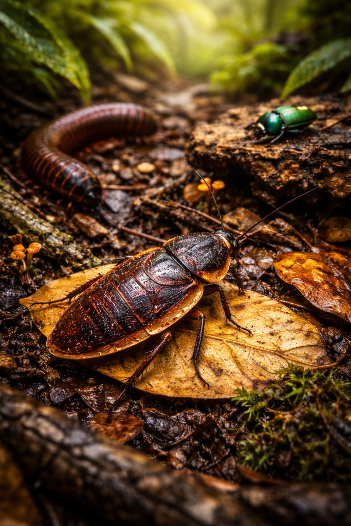 | 7 True Facts About Cockroaches Cockroaches are ancient insects. They have existed for hundreds of millions of years, surviving mass extinctions that wiped out far larger creatures. Most cockroach species do not live in houses. The majority live outdoors in forests, leaf litter, and soil, playing natural ecological roles. Cockroaches are powerful decomposers. They break down decaying plant matter, helping return nutrients to the soil. They can survive on very little food. Cockroaches are highly efficient, able to live for long periods on minimal resources. Some species can fly short distances. Flying cockroaches are common in tropical regions, even though many species prefer to run. They are extremely sensitive to vibration and air movement This makes them hard to catch and very quick to escape perceived danger. Cockroaches thrive in warm, humid environments. Tropical climates provide ideal conditions for their survival and diversity. 7 True Facts About Millipedes Millipedes are not insects. They are arthropods, more closely related to centipedes than to insects. They are slow-moving decomposers. Millipedes feed mainly on decaying leaves, wood, and plant matter. They have many legs — but not a thousand Despite their name, most species have between 30 and 400 legs. Millipedes curl into a spiral when threatened This posture protects their softer underside and vital organs. Some species release defensive chemicals. These substances can smell unpleasant or irritate skin, but are not deadly to humans. They prefer dark, damp environments. Millipedes thrive under logs, stones, mulch, and leaf litter. Millipedes play a key role in soil formation. By breaking down organic matter, they improve soil structure and fertility. 1 Shared Ecological Truth Both cockroaches and millipedes are essential recyclers They process organic waste that few other creatures can handle, quietly sustaining healthy ecosystems from the ground up. |