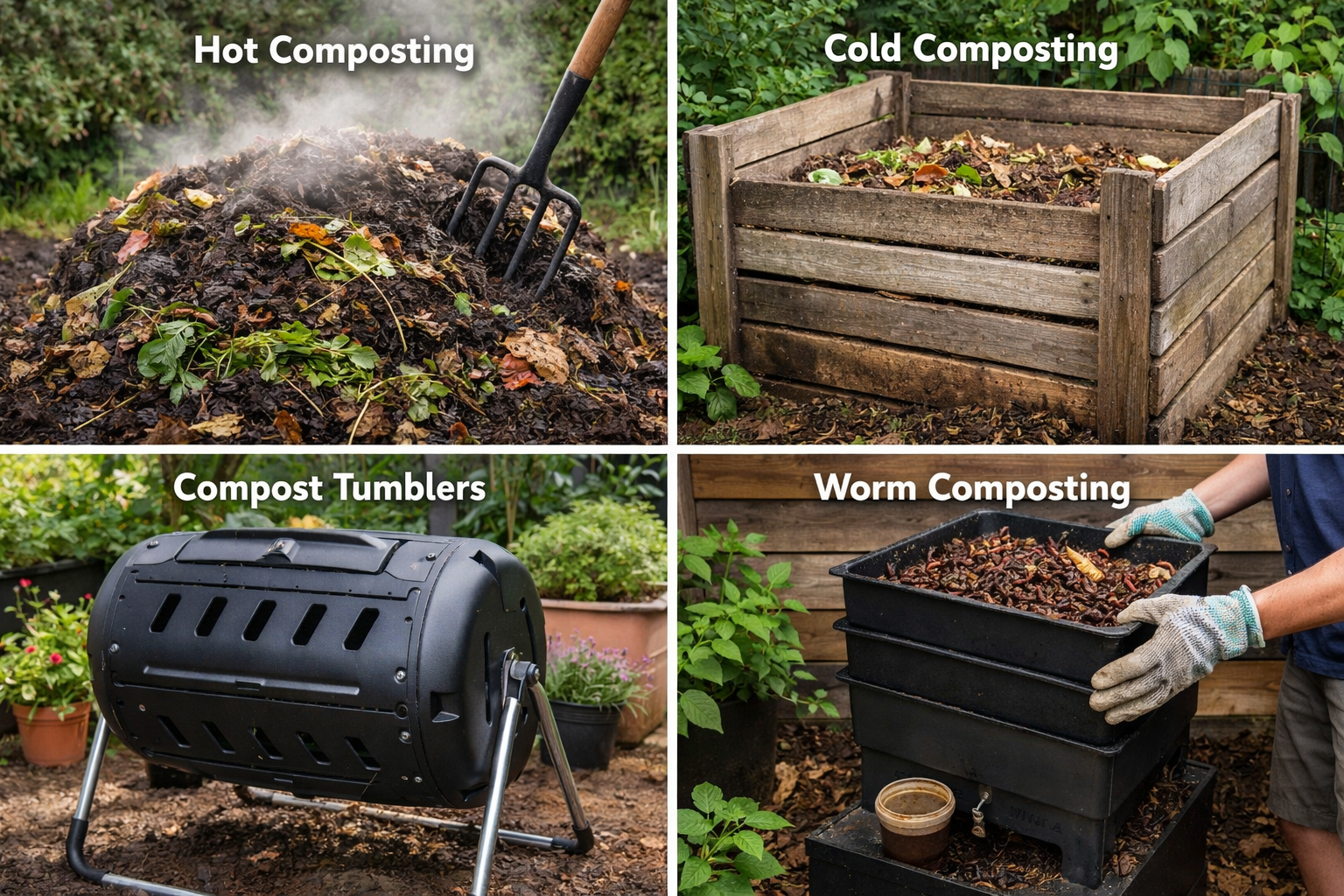 | Hot, cold, in-bin, tumbler, and worm composting — explained plainly Composting is one of those things that sounds either wonderfully simple or strangely intimidating, depending on who you last spoke to. One person swears by a steaming heap that breaks down in weeks; another quietly adds peelings to a bin at the bottom of the garden and forgets about it for a year. Both are composting. Both are right. The mistake people often make is assuming there’s a best method. There isn’t. There’s only the method that fits your space, your time, and your tolerance for fuss. The moment composting feels like a chore, it stops happening. This guide is about helping you choose a system you’ll actually stick with. I’ll walk through the main composting methods — hot, cold, in-bin, tumbler, and vermicomposting — and explain who each one suits, what it requires of you, and what you can realistically expect in return. First, a quick reality check Before choosing a method, be honest about three things: space, time, and temperament. If you have a big garden but little patience, you’ll compost differently from someone with a tiny courtyard who enjoys tinkering. If you’re out gardening daily, hot composting might suit you. If you’re flat-out working and just want peelings dealt with quietly, something slower and simpler is better. Composting should reduce waste and improve soil — not add stress. Keep that as the anchor point. Hot composting: fast, efficient, and hands-on Hot composting is what most people picture when they imagine “proper” composting. A large heap, built all at once, carefully layered with greens and browns, turned regularly, and heating up enough to steam on a cold morning. When it works well, it’s impressive. Material breaks down quickly, weed seeds are killed, and you can have usable compost in a couple of months. But it asks a lot in return. You need space — a decent footprint, not a tucked-away corner. You need volume — small heaps don’t heat properly. You also need time and physical effort, because turning is essential to keep oxygen flowing and temperatures up. Hot composting suits people who generate a lot of garden waste at once, enjoy an active role, and don’t mind getting stuck in. It’s excellent for allotments, larger gardens, and people who like systems that reward attention. It’s not ideal if you’re short on time or consistency. Cold composting: slow, forgiving, and steady Cold composting is the quiet workhorse of composting. No rushing, no turning schedule, no pressure to get the mix just right. You add material as it comes; nature does the rest. This method doesn’t heat up much, so decomposition proceeds more slowly. It can take a year or more for material to fully break down, and some tougher items may need to be sieved out at the end. Weed seeds aren’t reliably destroyed, so you need to be sensible about what goes in. That said, cold composting is incredibly forgiving. If you forget about it for weeks, nothing goes wrong. If the mix isn’t perfect, it still works. For many households, especially those new to composting, this is the most realistic place to start. If your priority is reducing waste and gradually improving soil, rather than speed or perfection, cold composting is a solid choice. In-bin composting: contained and neighbour-friendly In-bin composting isn’t a separate process so much as a way of managing space. It can be hot or cold, but everything happens inside a container rather than an open heap. Bins help keep things tidy, reduce smells when used properly, and are far more acceptable in smaller gardens or shared spaces. They also help retain moisture and heat, which speeds things up slightly compared to an open cold heap. The trade-off is access. Turning material inside a bin is harder, and retrieving finished compost from the bottom can be awkward. Some bins crack over time, especially cheaper plastic ones exposed to the sun and frost. In-bin composting suits small to medium gardens, town plots, and anyone who wants composting to stay visually contained. It’s often the best compromise between practicality and effectiveness. Tumbler composting: neat, fast, and controlled. Compost tumblers promise speed and convenience — and to an extent, they deliver. Being raised off the ground improves airflow and drainage, and turning the compost is as simple as rotating the drum. They heat up faster than static bins and are excellent for kitchen waste mixed with dry material. They’re also very tidy, which makes them appealing where appearance matters. However, tumblers have limits. Their capacity is fixed, so they don’t suit large volumes of garden waste. They can dry out quickly if not monitored, and once full, you need a second system or a pause while contents finish composting. Tumblers are best for households that produce regular kitchen waste, small gardens, and people who prefer controlled systems. They’re less suitable if you do large seasonal cutbacks or generate a lot of bulky material. Vermicomposting: small-scale and surprisingly effective Vermicomposting uses worms — usually tiger worms — to break down food waste. It’s compact, fast, and produces incredibly rich compost and liquid feed. This method is ideal for flats, kitchens, sheds, or anywhere outdoor space is limited. Worm bins don’t smell when managed properly, and they handle food waste better than most traditional compost systems. That said, worms are living things. They don’t like extremes of heat, cold, dryness, or neglect. You can’t just dump everything in and walk away. Some foods need to be limited, and you need to keep conditions stable. Vermicomposting suits people who enjoy a hands-on approach, want to compost food waste efficiently, and don’t have a garden. It’s not ideal if you want a set-and-forget solution. Matching method to material One of the most overlooked aspects of composting is what you’re composting. If most