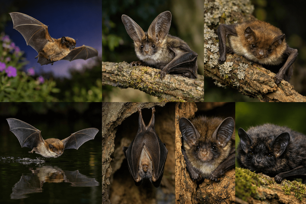 | How to Tell Them Apart in the Real World (without handling) Most people identify bats by where they’re flying and how they move: Low over water, smooth skimming → likely Daubenton’s Fast, darting in gardens/around houses at dusk → likely Common pipistrelle. Slow, hovering/close to vegetation, very gentle movement → often Brown long-eared Slow, hedge-hugging corridor flight; very sensitive to light → could be Lesser horseshoe (in the right regions/habitats) Strong, deliberate, low routes in traditional pasture/hedge landscapes → could be Greater horseshoe (where present) Deep woodland interior, veteran trees, very local and rare → Bechstein’s territory Woodland edges, later activity, hard to spot, moth-heavy feeding → Barbastelle possibility Mixed landscapes, steady presence, not showy → Brandt’s is a candidate (often requires acoustic confirmation) (And yes, many small bats look similar in silhouette. That’s normal. Location and behaviour are your best first clues.) |