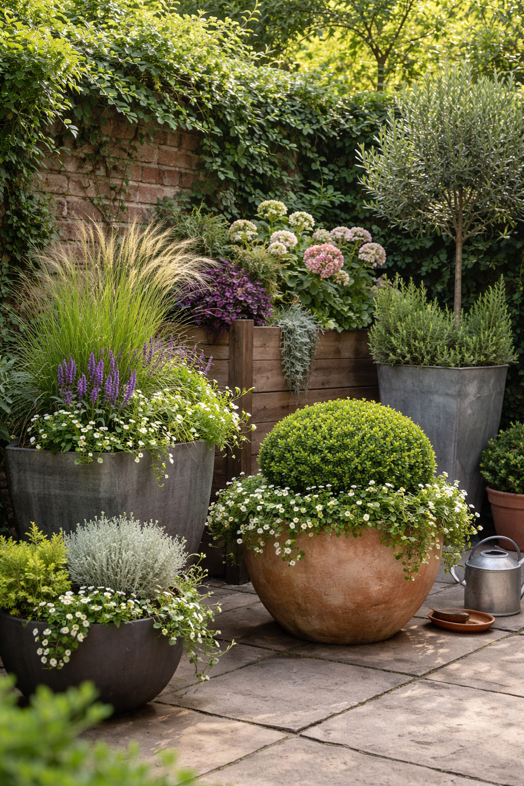 | A container garden is subtly subversive, suggesting movement in a discipline defined by rootedness. A pot can be lifted, turned, rearranged, or removed. Gardening becomes a negotiation. The soil is finite. Boundaries are clear. Signs of neglect appear quickly. In town gardens, containers are no longer just decorative afterthoughts but structural elements. I now see them as small, self-contained ecosystems sitting on brick, stone, decking, and concrete surfaces that once resisted growth—quietly insisting that soil can exist anywhere. It is important to note: containers are not miniature borders. This is the first key contrast to address. Unlike borders, containers behave differently, demand different care, and are less forgiving. While a border might cope if you are distracted for a month, a pot will immediately show neglect through leaf scorch and droop. That is not a complaint. It is simply the nature of containment. The Discipline of Volume When I began gardening professionally, I treated pots as scaled-down beds, but this approach did not suit container gardening. I used standard compost, watered often, and expected proportional results. They responded with mediocrity. Volume is fundamental in container gardening. Soil depth controls moisture, temperature, and nutrient availability; larger containers offer greater stability, while smaller ones heighten extremes. Recent summers with sudden heat, without gradual acclimatisation, highlight the performance gap between container sizes. A small terracotta pot can dry to dust within hours. In contrast, a large wooden planter maintains a cooler core even in direct sun. Neither is better or worse; rather, the contrast lies in how scale affects resilience. Containers reward generous soil depth, root room, and feeding. Frugality in volume often leads to more labour later. Choosing a larger container brings a psychological shift: planting becomes less seasonal, more architectural. One thinks in years, not months. Compost Is Not Soil The term “potting soil” unsettles me. What we use in containers isn’t living soil. It’s a substrate—a managed medium designed to hold moisture and nutrients. In a border, soil is alive beyond our understanding, regulated by fungi, bacteria, worms, and structure. In a pot, that complexity is reduced. We must supply what would otherwise occur naturally. I deliberately mix compost rather than rely solely on bagged blends. Grit improves drainage. Well-rotted organic matter adds weight and slow-release nutrition. Occasionally, a little garden soil—sieved and used sparingly—adds microbes. Some debate soil in pots. Context matters: in small containers, soil can compact; in larger ones, especially for woody plants, it adds stability. Attention to container needs is more important than rigid formulas. A common myth is that gravel improves drainage. In reality, it can trap water above the stones. True drainage requires the right compost structure and open holes, not gravel. Containers teach humility. They expose shortcuts. Watering as Observation Watering a pot is about attention, not routine. Schedules are convenient but blunt. Weather, exposure, plant type, and container material all affect results. In a south-facing courtyard, dark pots absorb heat and boost evaporation. Against a shaded wall, moisture lingers longer. Grouped pots create a microclimate, reducing wind and slowing transpiration. Deep watering—enough to let water pass fully through the compost—encourages roots to grow downward. Light, frequent watering keeps roots near the surface, exposing them to fluctuations in temperature and moisture. This is a simple observation, not a dramatic theory. Withholding water sometimes—not out of neglect, but to build resilience—prevents problems caused by constant dampness. Container plants signal stress quickly—curled leaves, dull colour, paused growth—requiring responsive care absent in borders. Feeding the Finite Nutrients in containers do not replenish themselves through rain filtering through layers of earth. They are used up and depleted. Feeding containers require timing and restraint. Use slow-release and liquid feeds as needed, not just products. Overfeeding causes weak growth; underfeeding brings pallor and stagnation. Both extremes stand out more in pots than in borders. A quiet satisfaction in container gardening is seeing a plant respond to nourishment within days. The feedback is swift, reminding us that plants are living systems in dynamic exchange with their environment. Structure Before Season My main shift: favouring long-term container structure over fleeting seasonal displays. There is nothing wrong with summer bedding. But replacing an entire display twice a year can contrast immediate spectacle with long-term resilience, and may become more a performance of abundance than cultivation. Now I prefer building containers around a core—an evergreen shrub, a small grass, or a reliable perennial. Seasonal plants are added lightly, woven through but not dominating. This has practical benefits. Roots establish more deeply. Watering stabilises. The container shifts from a temporary arrangement to a miniature landscape. This approach reflects gardening as stewardship, not endless reinvention. The Constraint as Creative Force Container constraints sharpen design: proportion matters. A small plant can dominate, and delicate species may fade unless paired well. I see containers as conversations between height, mass and movement. An upright element gives a spine. Surrounding plants soften edges. A trailing plant draws the eye downward, blurring the line between pot and ground. But even here, rules are flexible. Windy gardens call for sturdier forms. Shaded courtyards favour foliage over bloom. The context determines the balance. One common assumption is that containers are mainly for colour. I find this limiting, especially when contrasted with the enduring appeal of texture, leaf shape, 