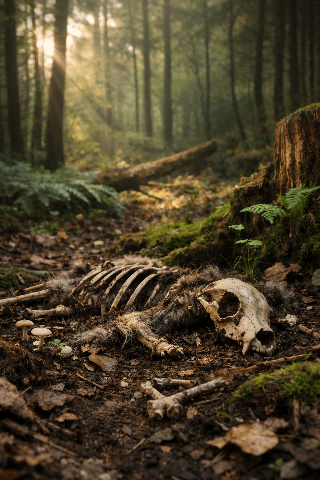 A reflective exploration of how animal decomposition feeds soil, and why woodlands recycle life while wetlands store it.