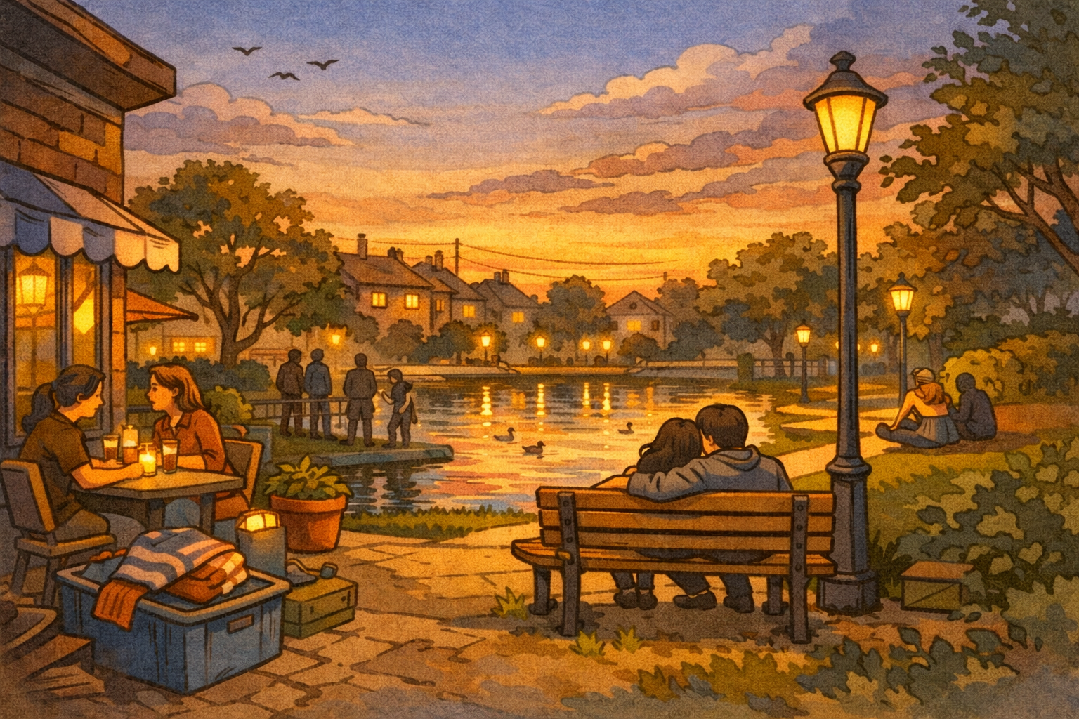 A reflective essay on the first warm evening of the year — exploring relief, shared attention, seasonal transition, and the quiet shift from endurance to ease.