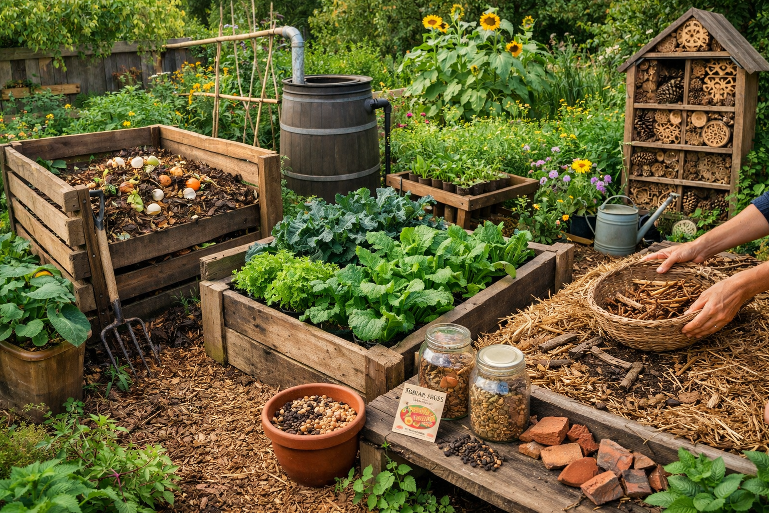 A practical, down-to-earth guide to zero-waste gardening, showing how composting, mulching, reuse, and natural cycles create healthier, lower-effort gardens.