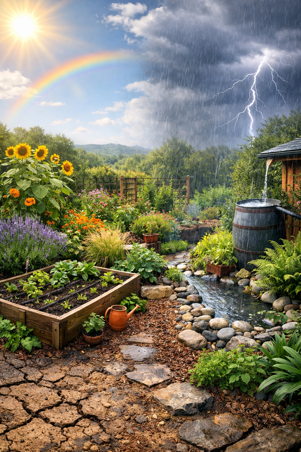 A practical guide to variable weather gardening, explaining how to build resilient gardens through soil health, plant choice, flexible timing, and adaptive maintenance.